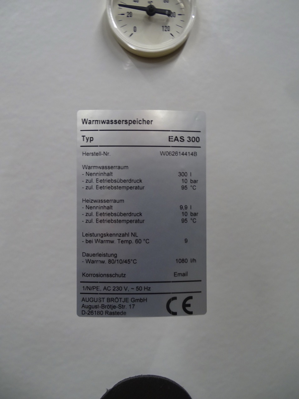 Das Angebot beinhaltet einen Warmwasserspeicher der Marke Brötje.