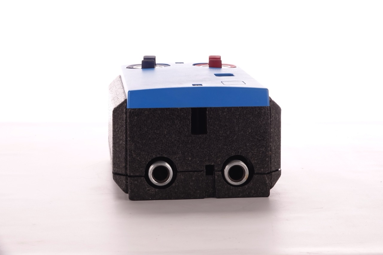 - Rückschlagventil, Kugelhahn-/ Thermometer-Kombination im Vor- u. Rücklauf, Verschraubungsteile zum anlagenseitigen Anschluss für Vor- u. Rücklauf, komplett mit Wärmedämmschalen einschl blauer Design-Frontabdeckung.