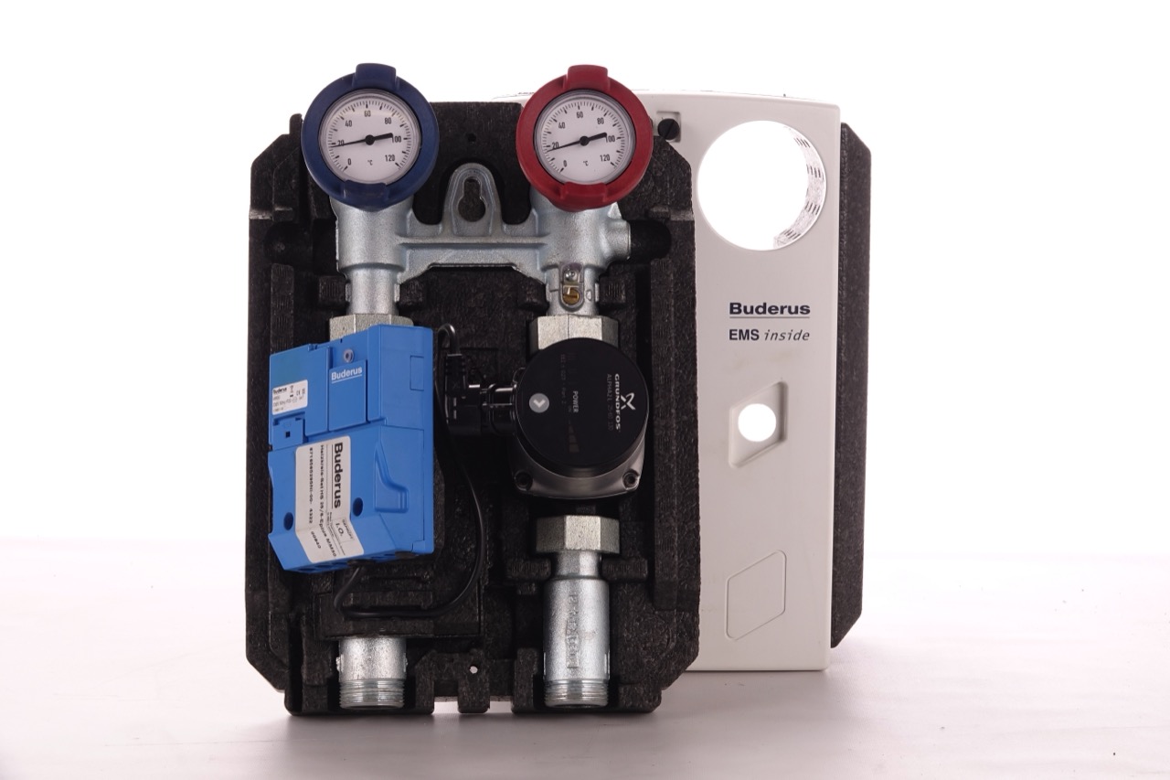 Das Angebot beinhaltet eine Pumpengruppe der Marke Buderus.
