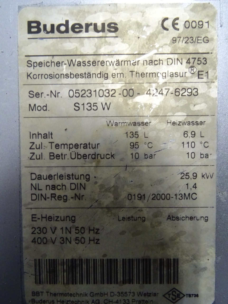 Kundenbewertungen für "Buderus S135 W Warmwasser-Speicher 135 Liter Bj.2010"