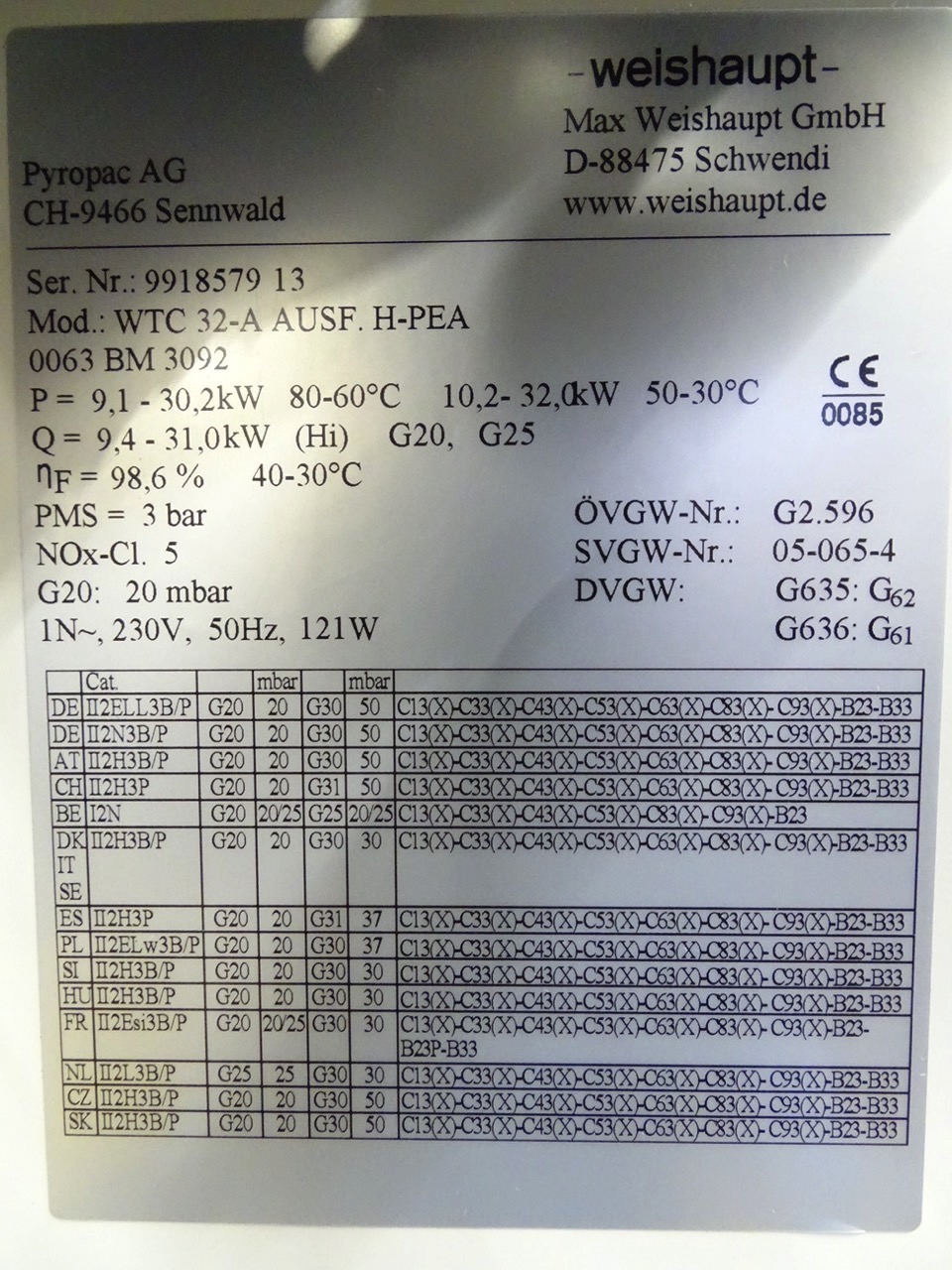 - Typ: Weishaupt Thermo Condens WTC 32-A Ausführung H-PEA