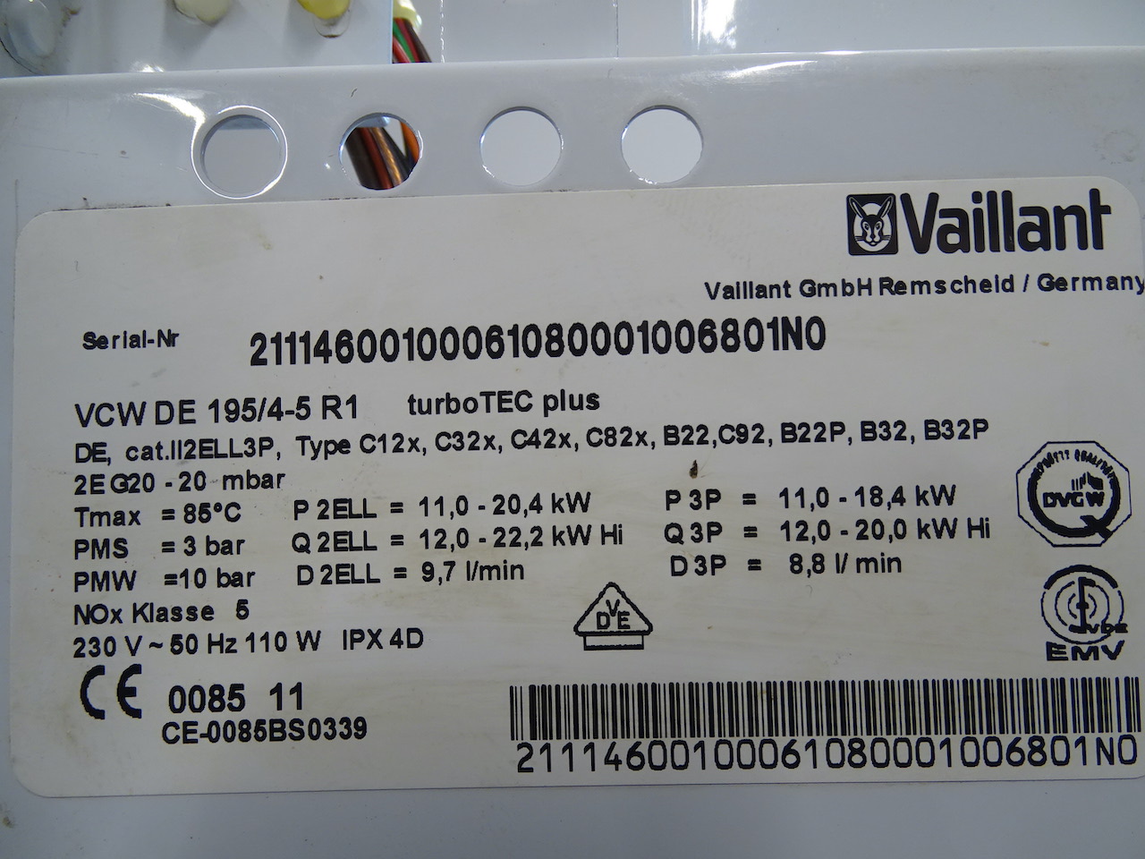 - Nennwärmeleistungsbereich (Trinkwasser): 11,0 kW - 20,4 kW