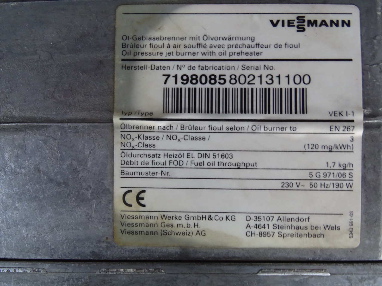 - Brenner: Viessmann Vitoflame VEK I-1