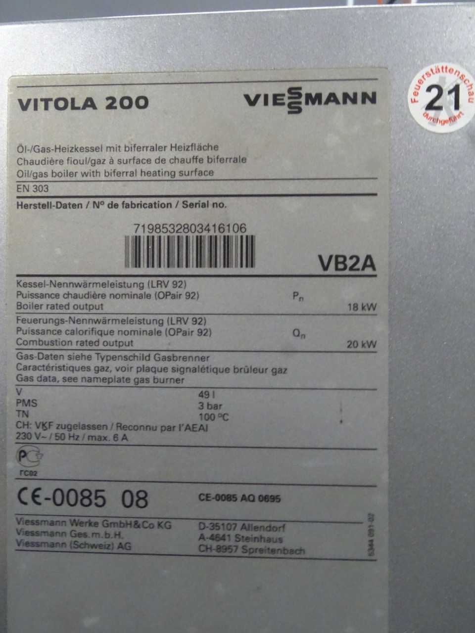 - Typ: Viessmann Vitola 200 VB2A