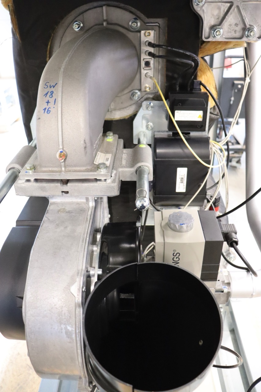 - Der Kesselblock überträgt die vom Brenner erzeugte Wärme an das Heizwasser.