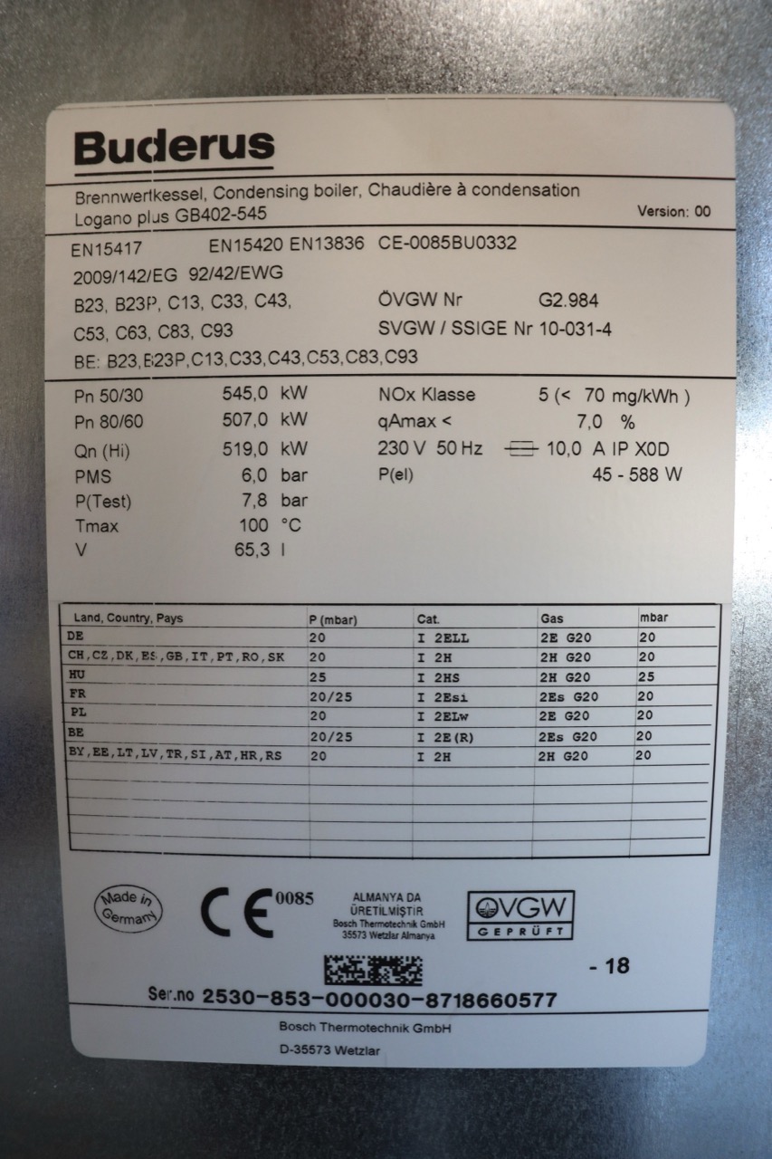 - Typ: Buderus Logano plus GB402 - 545kW