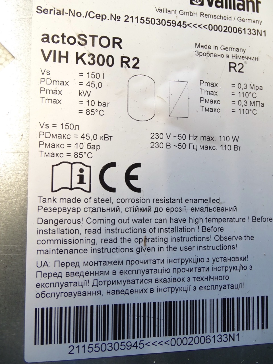 - Vaillant actoSTOR VIH K 300 R2