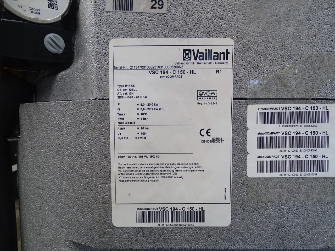 - Typ: Vaillant atmoCompact VSC 194-C 150-HL