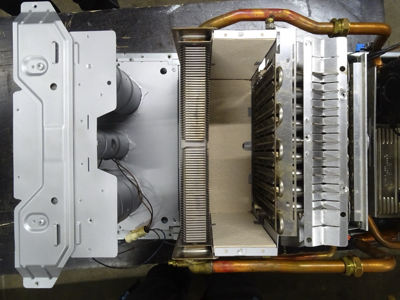 Gas-Kombitherme = Heizung und Warmwasser in einem Gerät (Kamingerät / Anschluß)