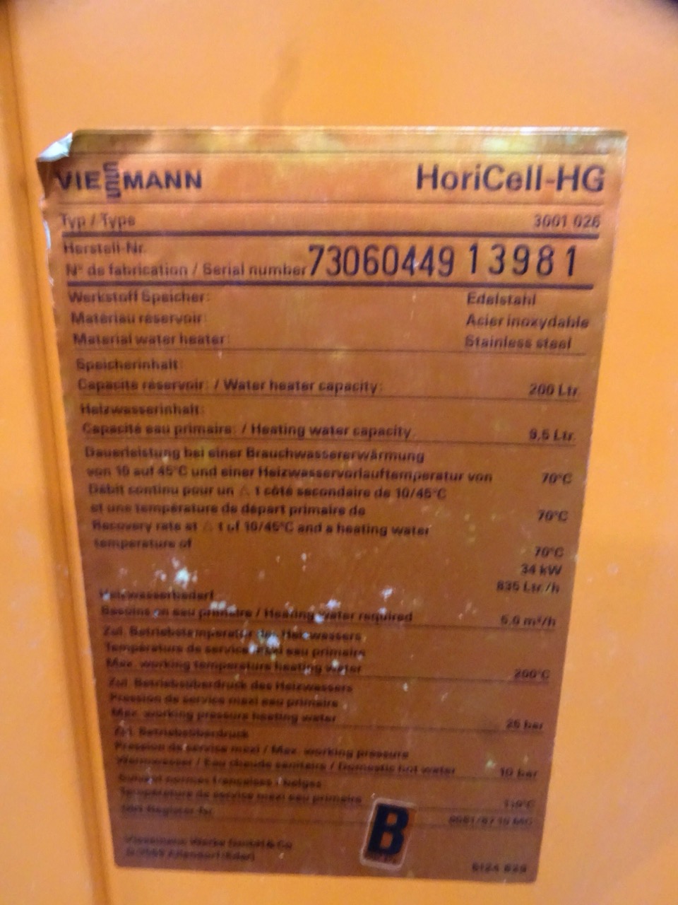 Kundenbewertungen für "Viessmann HoriCell-HG 200 Liter Edelstahl-Warmwasserspeicher Wassererwärmer 200L Bj.1999"