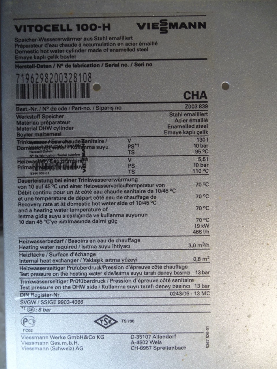 - Typ: Viessmann Vitocell 100 CHA