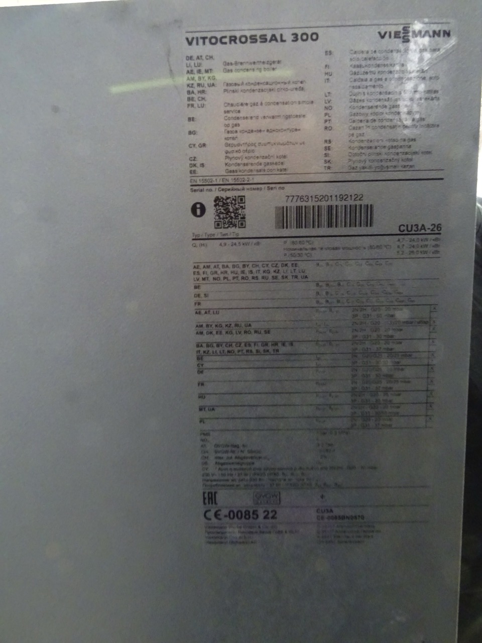 - Typ: Viessmann Vitocrossal 300 CU3A-26