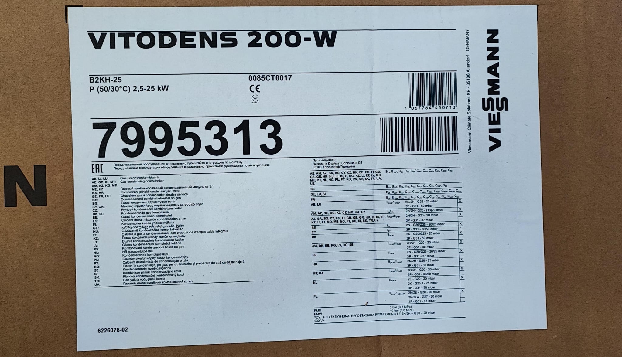 Viessmann Vitodens 200-W B2KH Gas-Brennwert-Kombi-Therme 25kW
