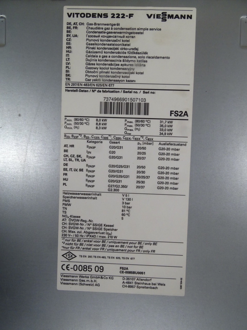 - Typ: Viessmann Vitodens 222-F FS2A