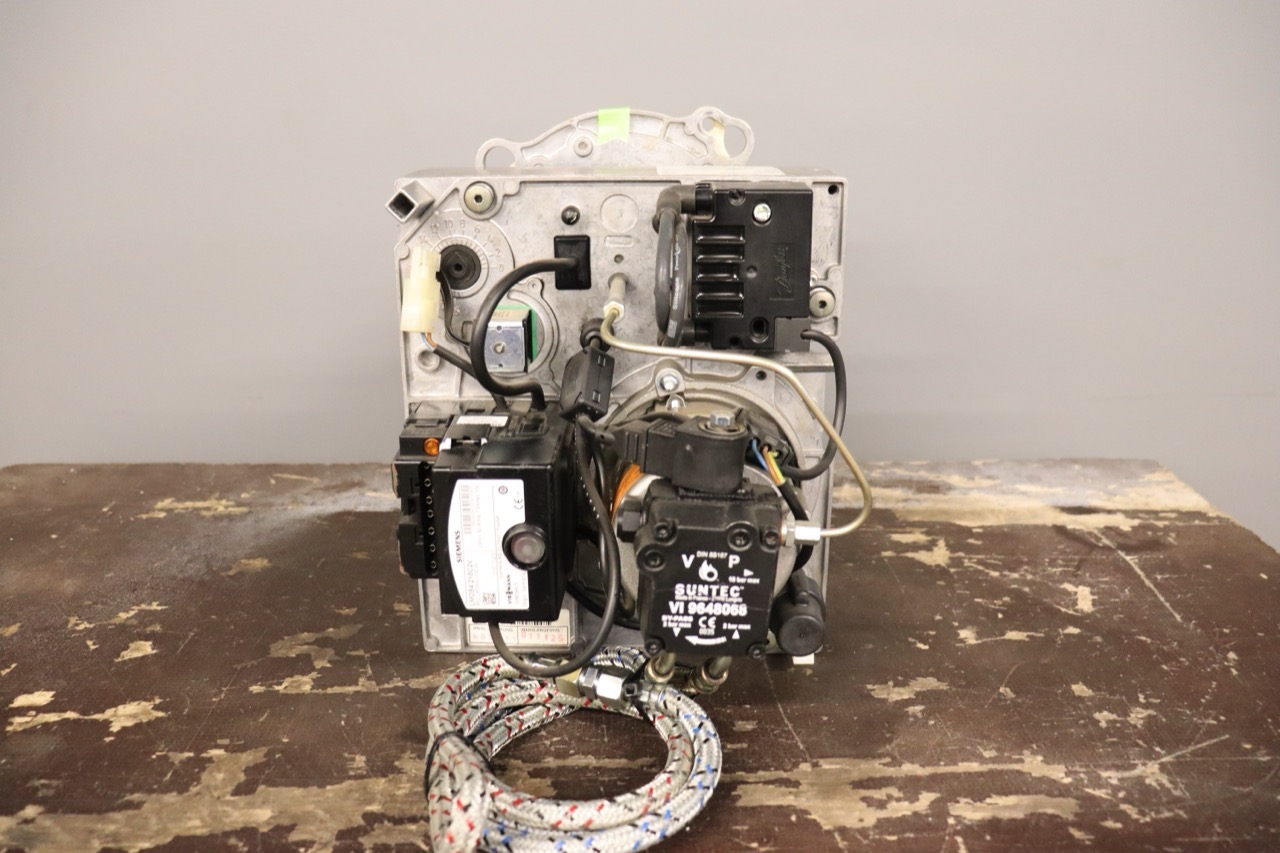 - Kompletter Ölbrenner mit Düse und Ölvorwärmer, zwei Ölschläuchen und Ölpumpe mit eingebautem Magnetventil, sowie Flammenrohr aus Edelstahl.