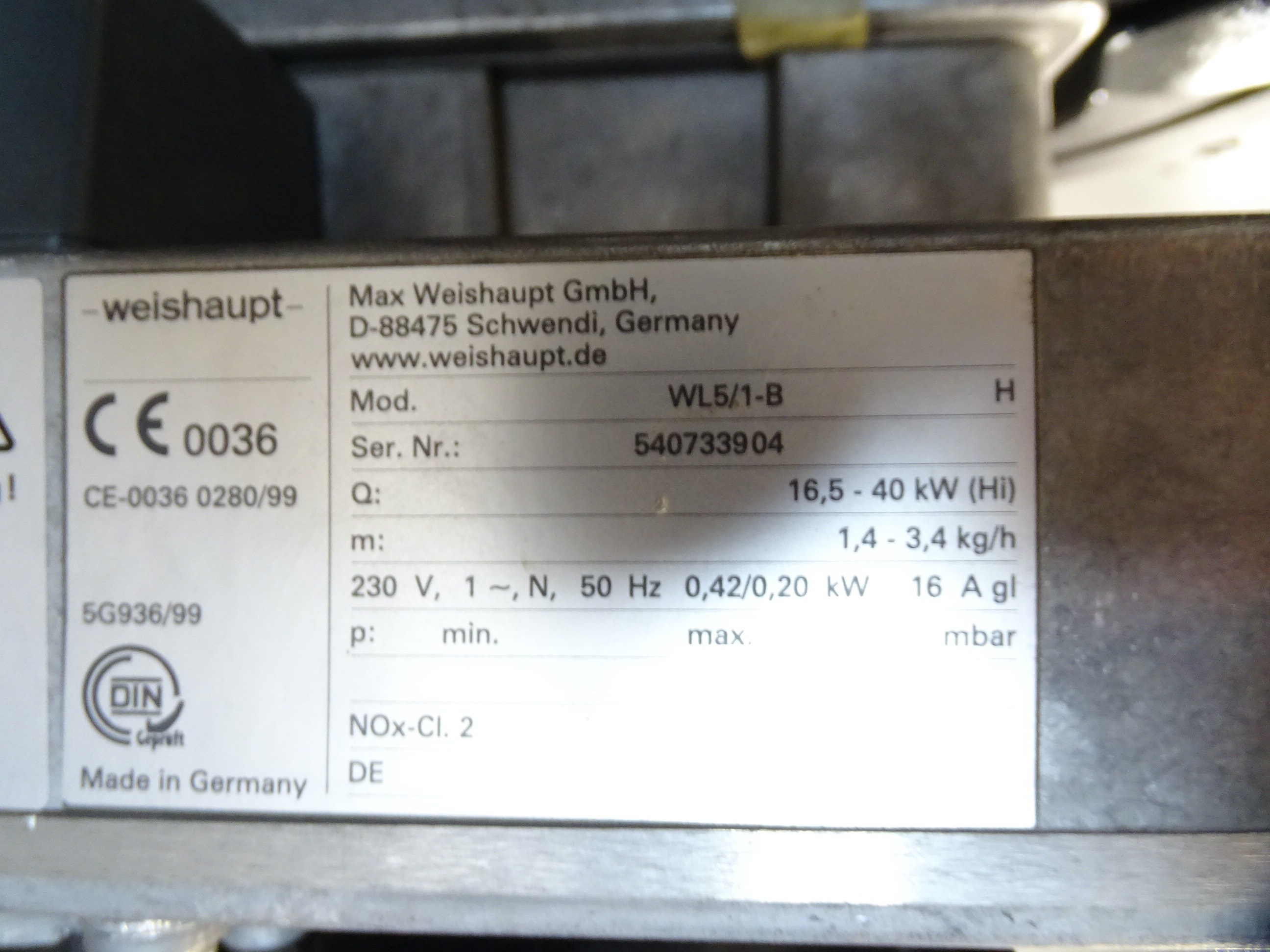 - Brenner: Weishaupt WL5/1-B Öl-Brenner