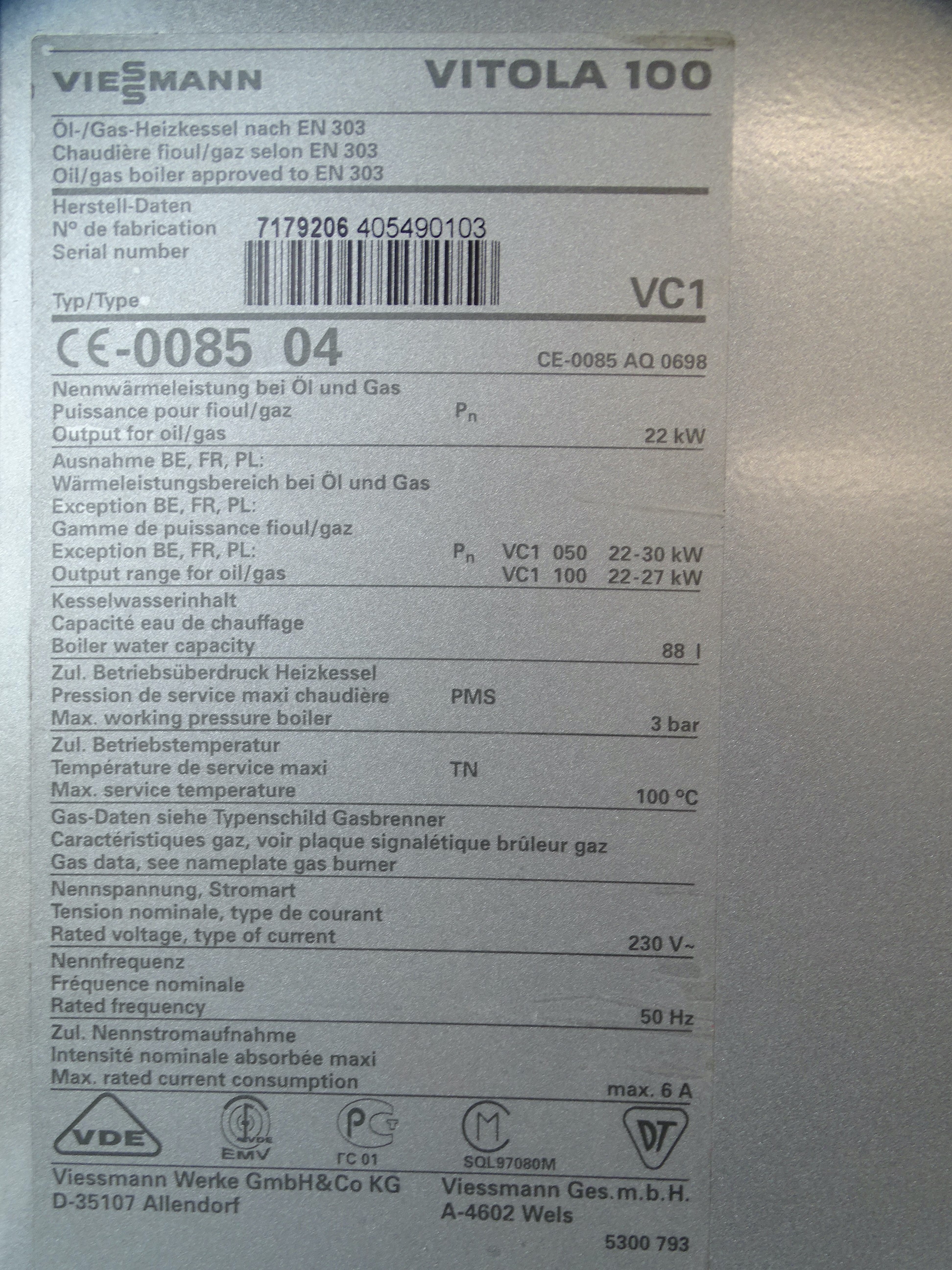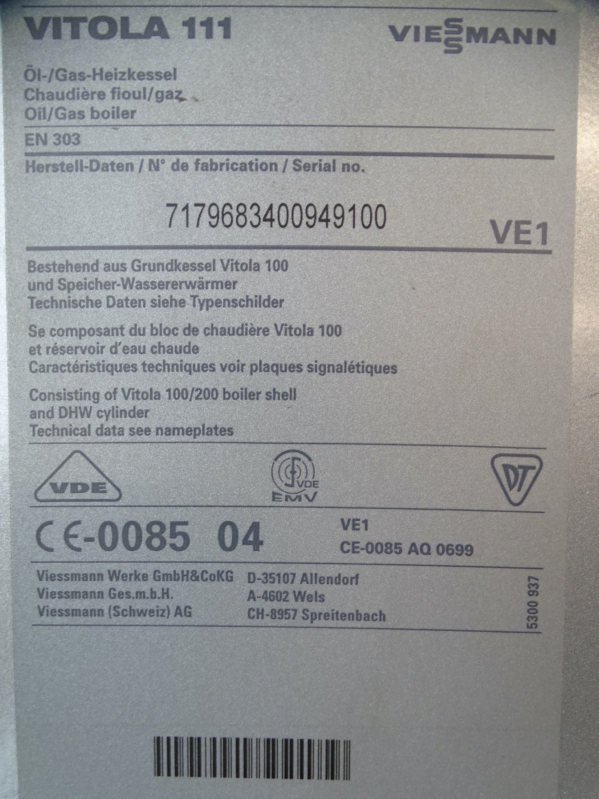 - Typ: Viessmann Vitola 111 VE1