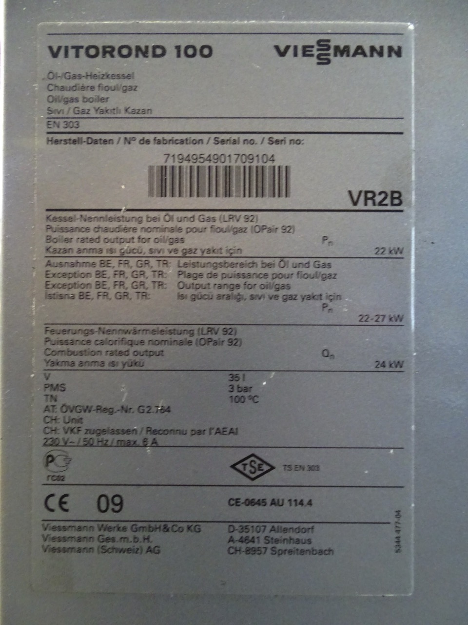 - Typ: Viessmann Vitorond 100 VR2B