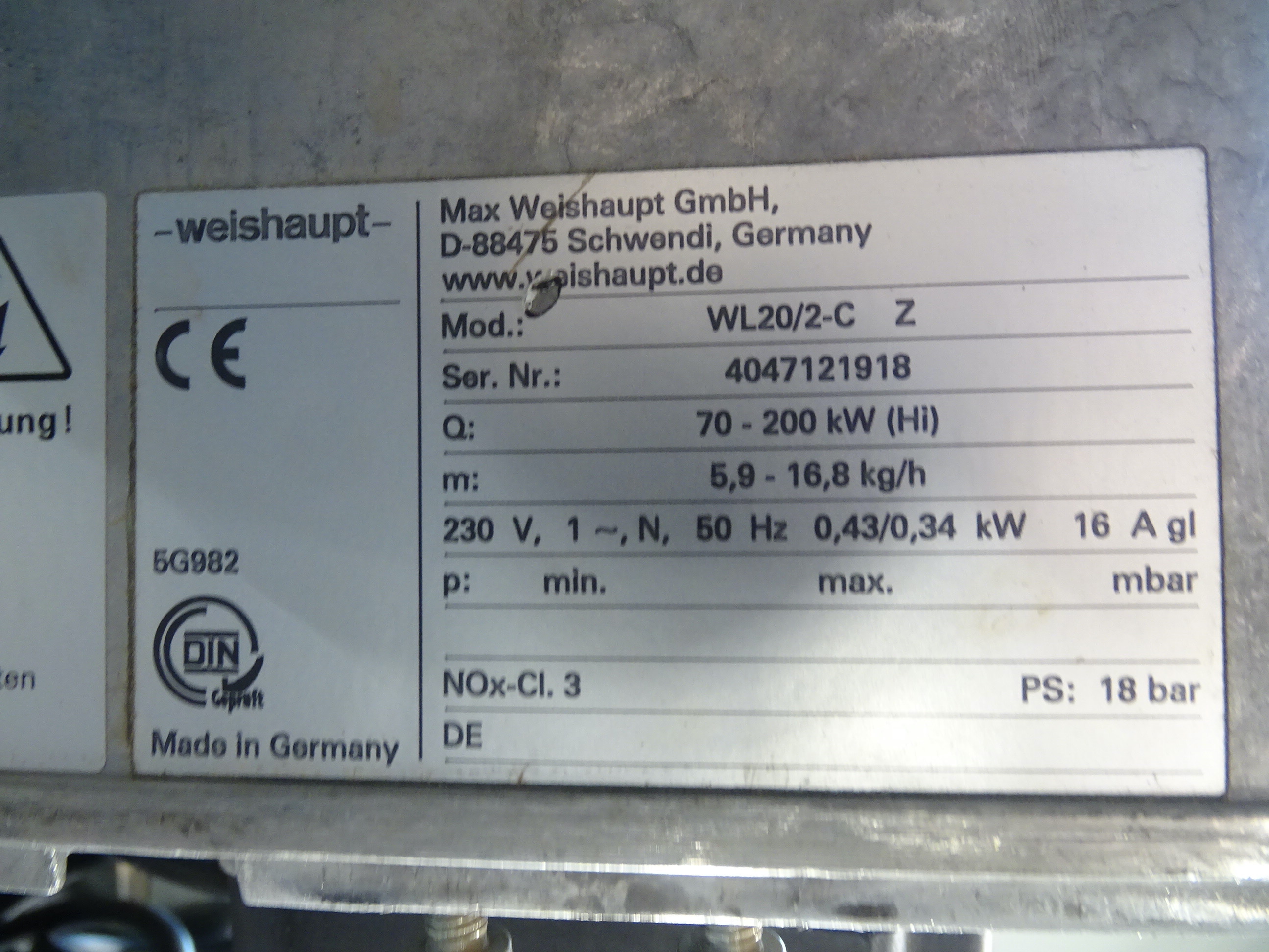 - Brenner: Weishaupt WL20/2-C Z