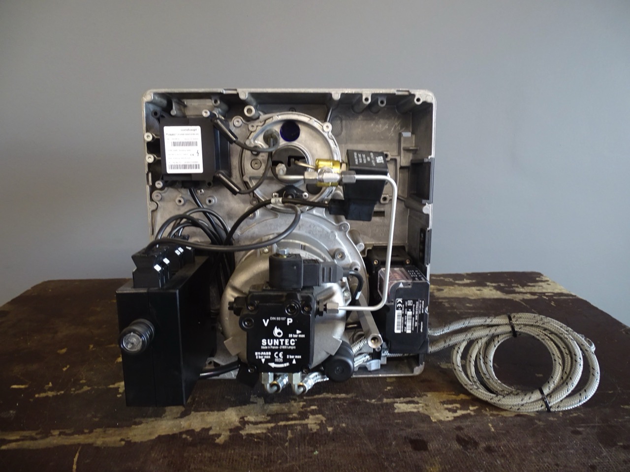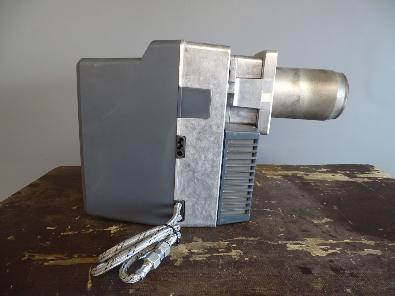 - Querliegendes Verbrennungsluftgebläse mit Ölpumpe und Magnetventil.
