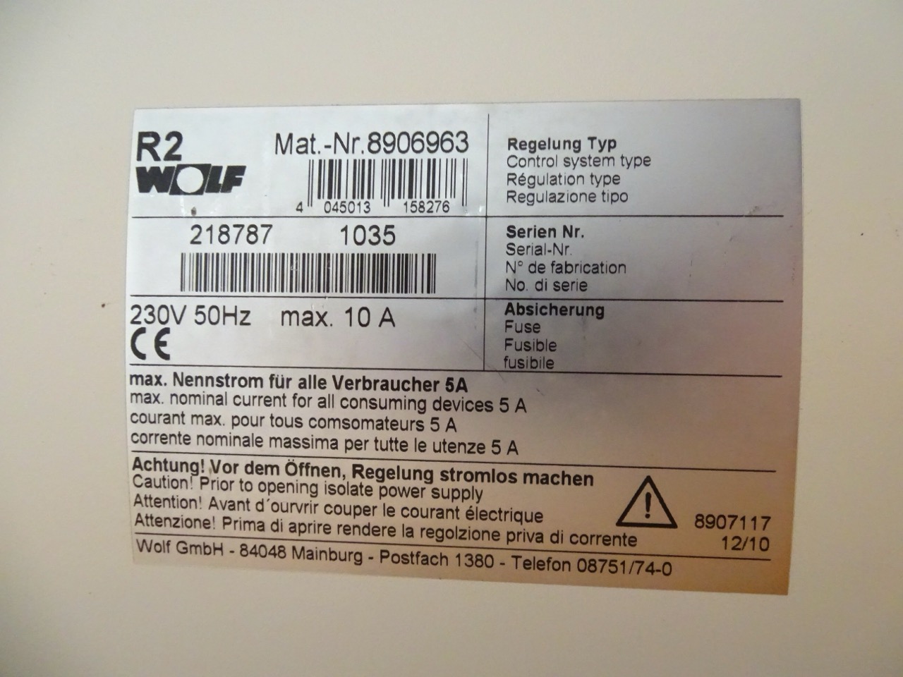 - Steuerung: Wolf R2 Steuerung