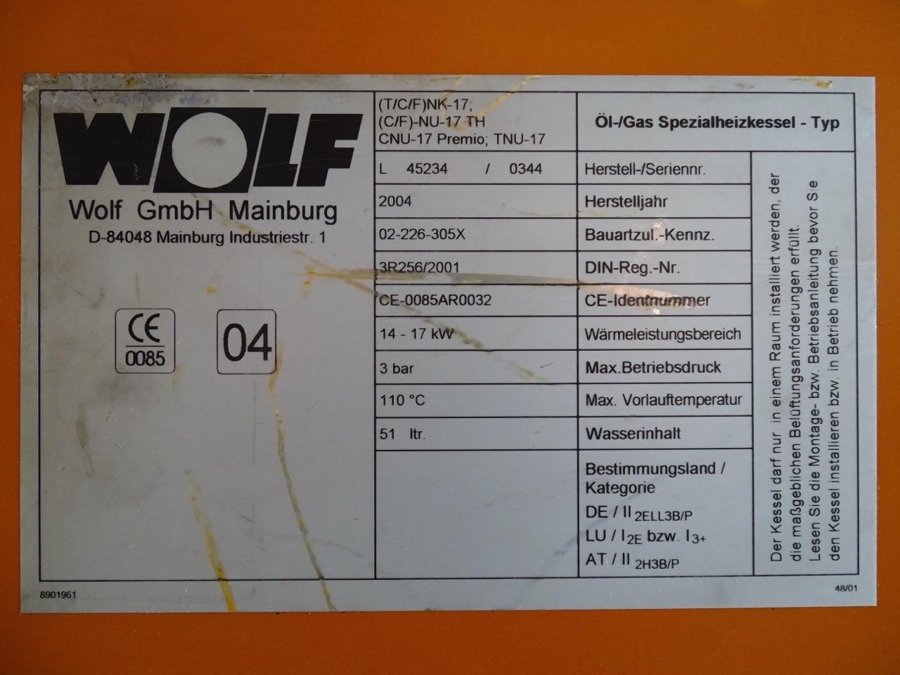 Wolf CNU-17 Premio 17kW Öl-Heiz-Kessel Bj.2004