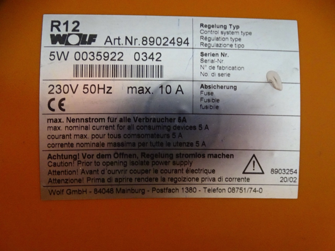 - Steuerung: Wolf R12 W5 DigiCompact