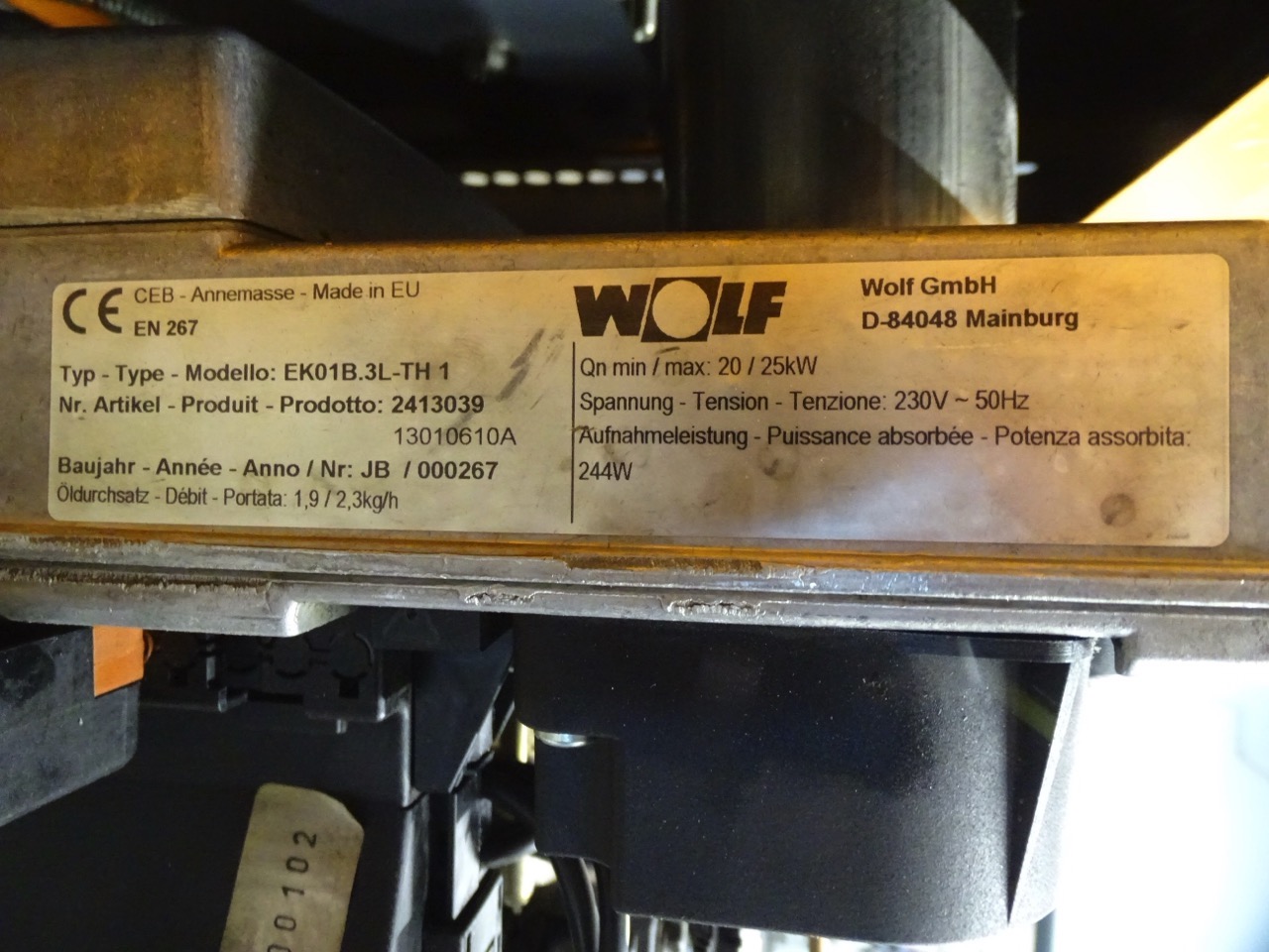 - Brenner: Wolf Öl-Gebläsebrenner EK01B.3L-TH1