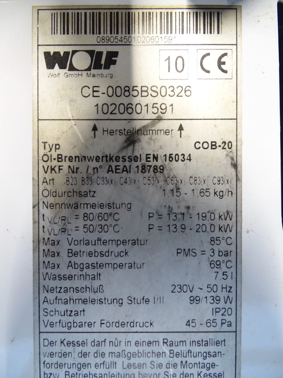 - Typ: Öl-Brennwertkessel Wolf COB-20