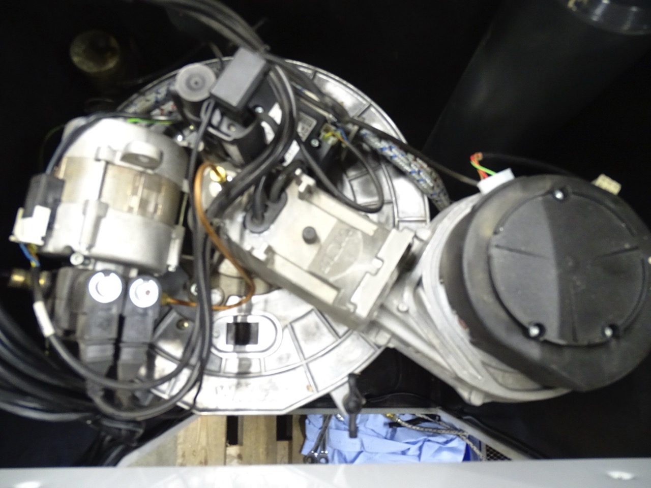 - Der zweistufige Blaubrenner holt seine Verbrennungsluft aus dem Aufstellraum oder über ein Doppelrohr von außen; das steigert die Effizienz (durch Vorwärmen der zugeführten Luft) und verhindert das Auskühlen des Aufstellraums.