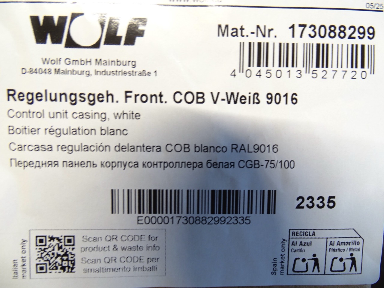 - Regelungsgeh. Front. COB V-Weiß